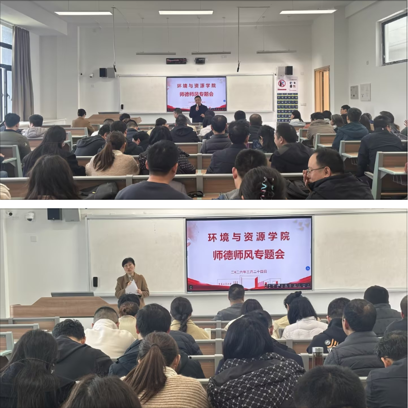 为全面加强新时代教师队伍建设,筑牢师德师风思想根基,近日,环境与资源学院召开师德师风专题教育会。学院全体教职工参会,会议由学院党委书记陈龙国主持。