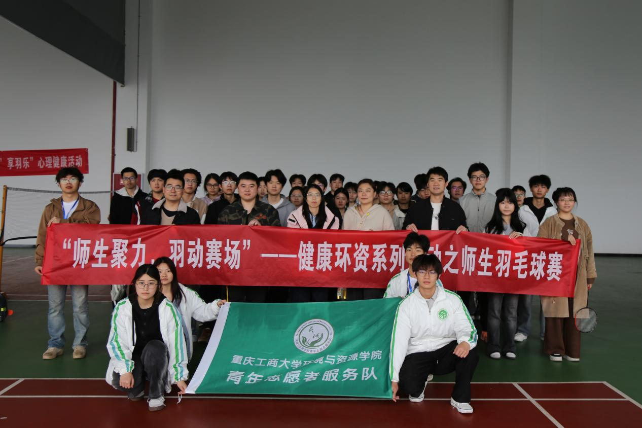 为丰富校园文体生活,营造积极向上、和谐融洽的校园氛围,搭建师生互动交流新平台,2026年3月27日下午,重庆工商大学环境与资源学院“羽你同行,师生共竞”师生羽毛球联赛在茶园校区羽毛球场成功举办。本次赛事由学院分团委主办、青年志愿者服务队承办,共计50余名学院师生参与。