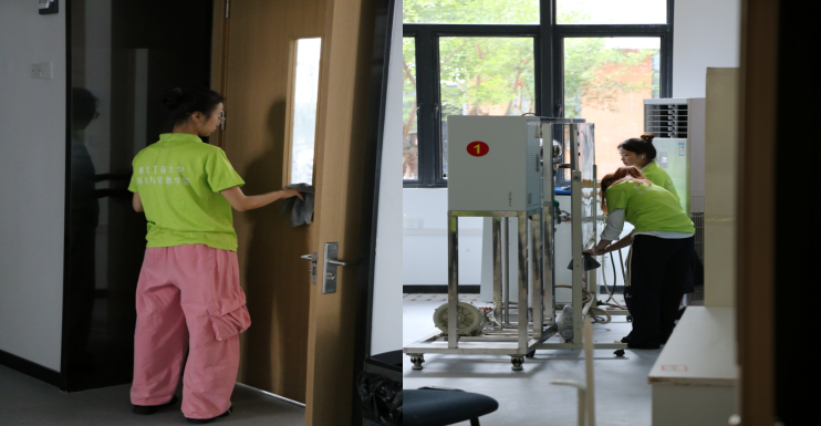 为确保清扫工作高效、有序进行,环资学院楼管会提前制定了详细的工作方案,通过在线表格实行精细化排班,将参与学生划分为九个小组,并设置专人进行工具管理、签到及运送垃圾。各小组分别负责不同楼层与编号的教室及实验室,任务涉及地面清扫及拖洗、门窗擦拭、桌椅及黑板清洁等环节。针对部分存放精密仪器的实验室,特别强调操作规范与安全意识,明确要求仅开展地面清洁工作,严禁触碰任何实验设备,切实保障仪器安全与人员责任到位。