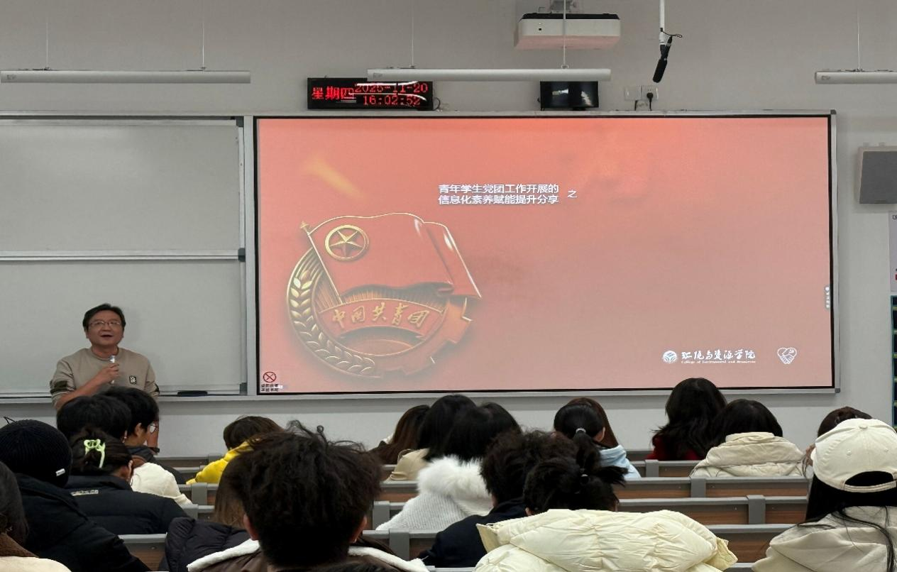 寒冬时节,暖意融融。为帮助青年学子有效应对党团工作中的数字化实践挑战,进一步提升综合能力,11月20日,环境与资源学院党员服务站于茶园校区成功举办“智启党团:解锁数字化新路径”主题讲座。本次活动特邀学院专职组织员邹奇担任主讲,吸引了近百名学子积极参与,大家在浓厚的学习氛围中共同探索数字化赋能党团工作的新方法。